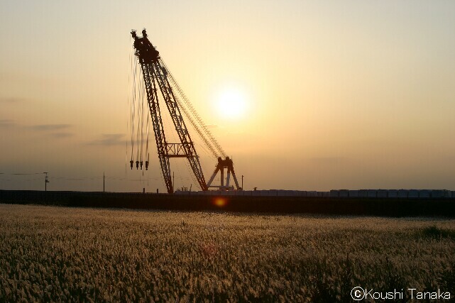 今日は夕方まで寝てまして、起き出した所夕焼けが異様に綺麗なのに夕方から写真を撮りに行ってきました。上の写真がその時の写真です。初めは海に行っていたんですけど、何時もなんかワンパターンだなぁと感じ、いろいろ来るまで走り回っている内に面白い風景だと思い、撮ってみました。